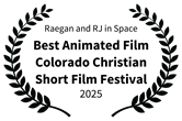 Please see the 'Awards' page - 'Raegan and RJ in Space: First to Mars' 3D animated adventure won Best Animated Film at the Colorado Christian Short Film Festival in 2025, Best Animation and Best Director awards at the Knoxville International Christian Festival in 2024, Best Animation award at the Christian Georgia Film Festival in 2022, Best Animation award at the Christian Georgia Online Film Festival in 2021, Best Animation award at the 2018 Christian CinemaFest, and Best Animation at the 2017 Christian Family Film Festival. The 'Raegan and RJ in Space: Christmas on Alpha Centauri' won a Best Graphic Novel award at the 2023 Pinnacle awards and Best Children's Book in the 2024 Knoxville International Christian Book Awards! The 'Raegan and RJ in Space: First to Mars' graphic novel won a graphic novel award at the 2016 Readersfavorite Book Awards! Other awards are 'Raegan and RJ in Space: Celebration at Alpha Centauri' graphic novel is a 2015 Readersfavorite Book Award winner, 'Raegan and RJ in Space: Solar Storm' graphic novel is a 2015 Readersfavorite Book Award winner, 'Raegan and RJ in Space: Raegan and RJ Save the Day!' won both a graphic novel is a 2014 Pinnacle Book Awarda and 2014 Readersfavorite Book Awards, 'Raegan and RJ in Space: Colonizing the Galaxy for Christ!' graphic novel is a 2014 Readersfavorite Book Award winner, and 'Raegan and RJ in Space: Mission to the 3 Suns' graphic novel is a 2013 Readersfavorite Book Award winner!